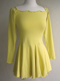 #5014 ダンスドレス¥5,900サイズ:120cm〜160cm ローウエストのデザインです。 ボディー部分は折り返しても着られます。色、生地見本 | ||