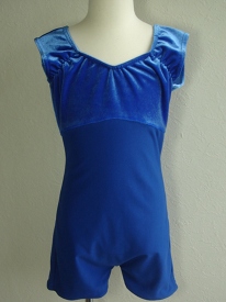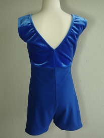 #4004 ベロア/バックスキンユニタード¥6,900サイズ:150cm〜160cm バスト切り替え(青ベロア)とウエスト切り替え(エンジベロア)とが選べます。 色、生地見本 | ||