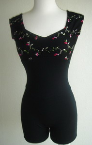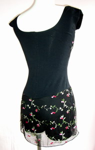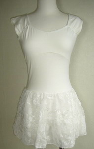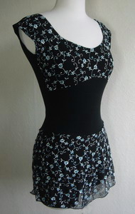#4004 レース切り替えユニタードスカートなし ¥6,800スカート付き ¥7,800 サイズ:150cm〜160cm 写真は左から、フラワーガーデンのスカート無し、フラワーガーデンのスカート付き後ろ、水色ミニバラスカート付きです。 色、生地見本 | ||