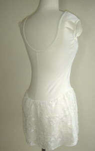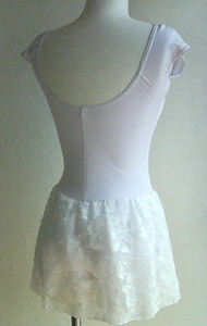 #4004ー ライラック オーガンジースカート付きユニタード(裏地付き)¥7,200サイズ:150cm〜160cm 上品な淡いラベンダー色に、素朴なようで華やかな白オーガンジーのスカートが付いています。 色、生地見本 | ||
