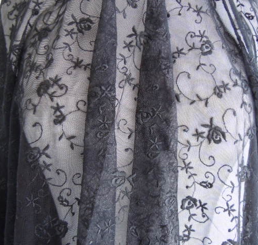 ※レース地の色は黒です。生地見本では、レースの柄がわかりやすいように、白いボディーの上に被せて撮影しています。